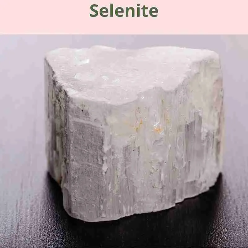 Selenite comes in various colors: white, pink, orange, red, and green. White selenite is the most common type of selenite. It is associated with the planet Venus and the element of water.